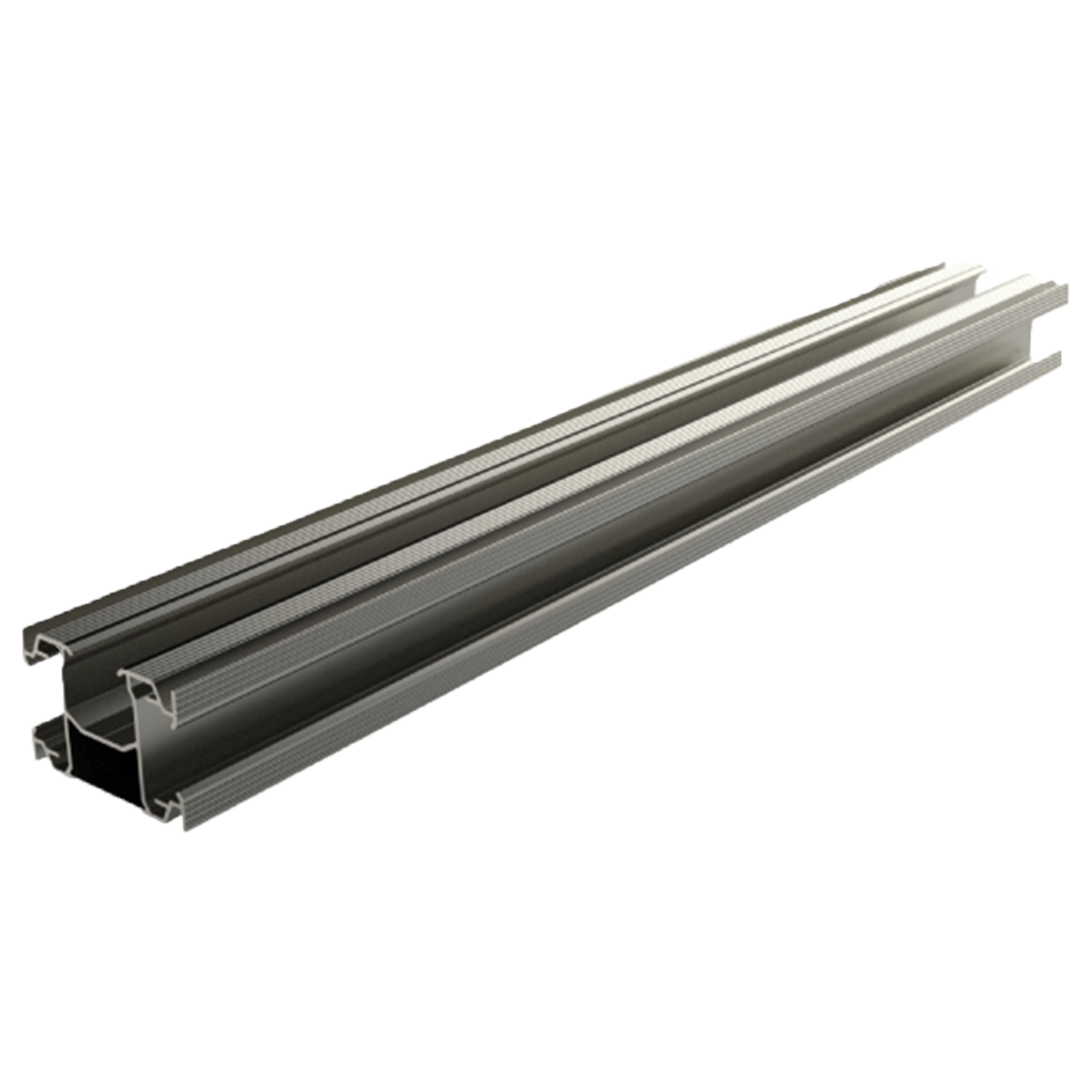 El Mrail es la pieza central de cualquier estructura fotovoltaica. Extruido en aluminio AL6005-T5 anodizado, su canal tipo T permite colocar abrazaderas y accesorios en cualquier posicion.